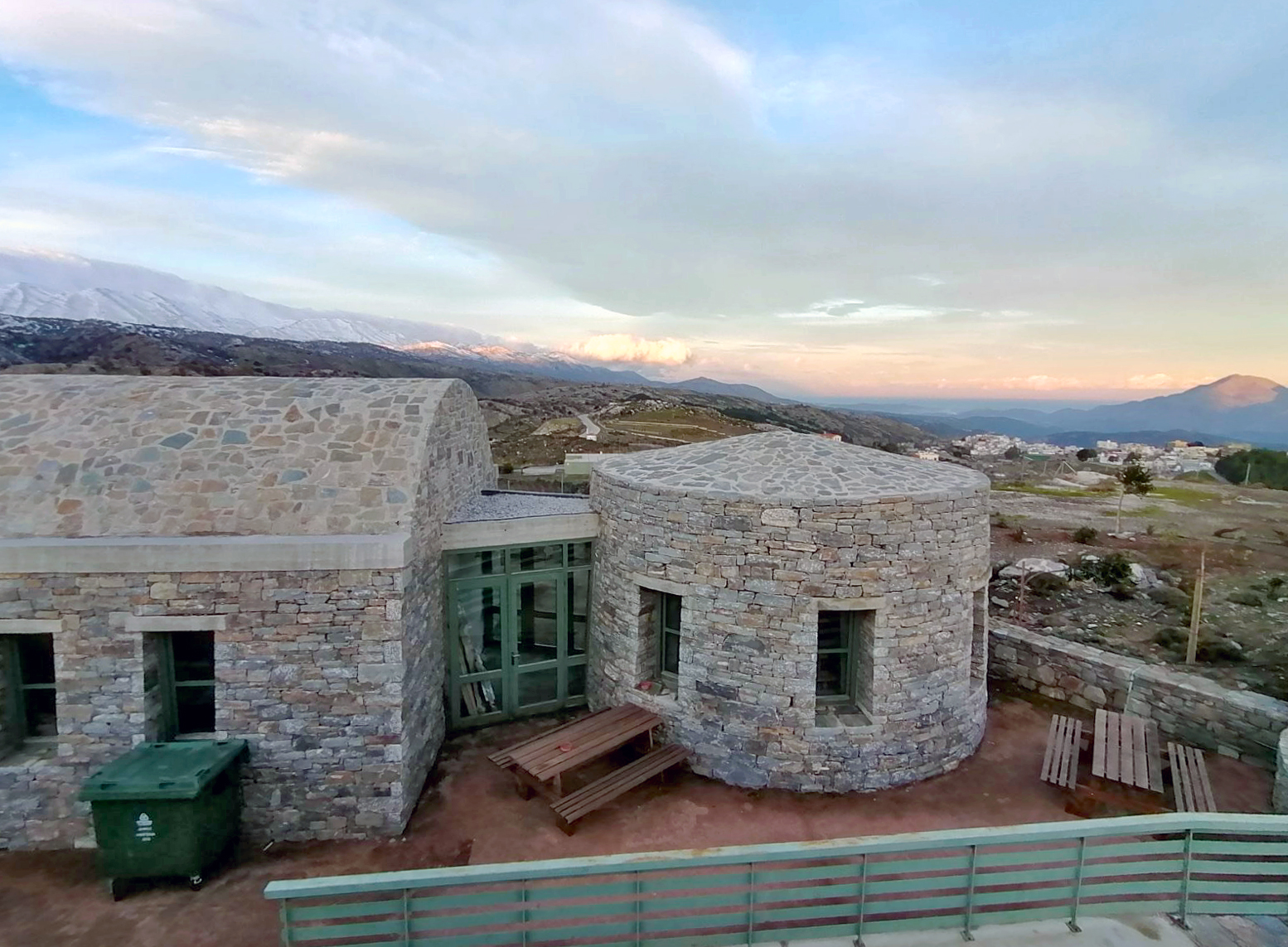 Εκθετήριο - Αναψυκτήριο Ο επισκέπτης εισερχόμενος στο θεματικό πάρκο το πρώτο που συναντάει είναι το εκθετήριο – αναψυκτήριο χτισμένο στο πρότυπο του ενετικού τυροκομείου του Αρχαιολογικού Χώρου της Ζωμίνθου. Εκεί ο επισκέπτης μπορεί να αναπαυθεί και να απολαύσει τον καφέ του, το χυμό, το αφέψημα από τα αρωματικά φυτά αλλά και να αγοράσει μικρά δείγματα της τοπικής παράδοσης (υφαντά, τυροκομικά προϊόντα, καλλιτεχνικές κατασκευές, χειροποίητα μαντίλια, (μαντιλέδες), κ.λπ.